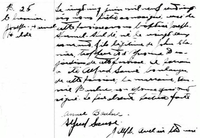 Record de baptême de Joseph Harmel Haldé Chesnier