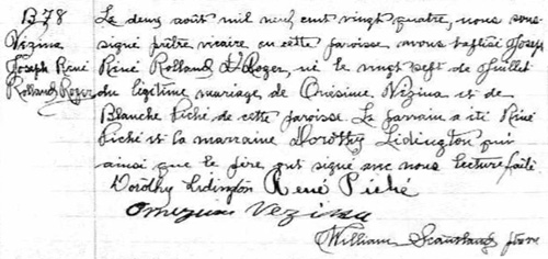 Acte de naissance & baptême de René Vezina