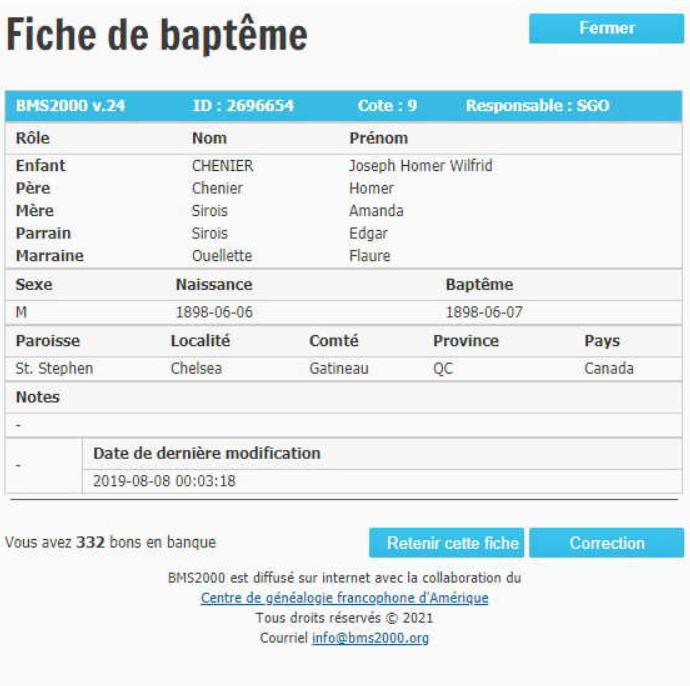 Birth & baptism record of Joseph Homer Wilfrid Chénier