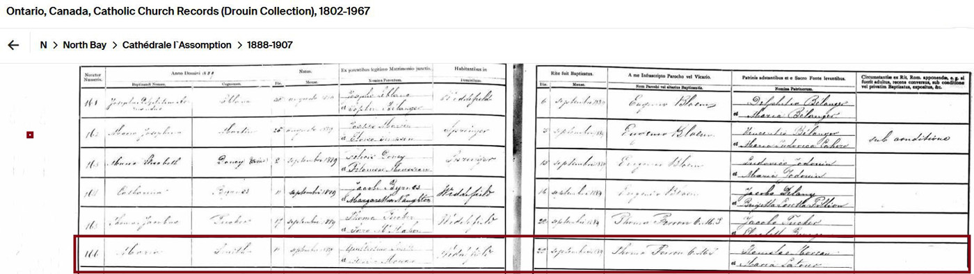 Birth & baptism record for Maria (Exilia) Smith (Acc/to Ancestry.ca)