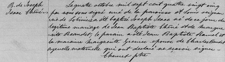 Bap. of/de Joseph Isaac Chêné