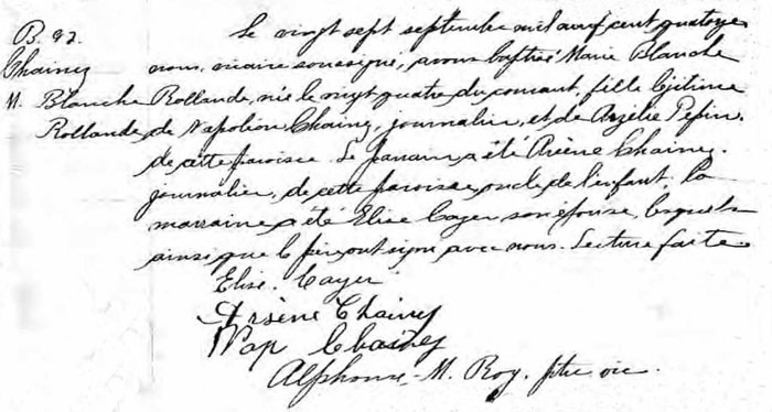 Baptism of Marie Blanche Rollande Chainez