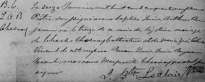 Record de baptême de Louis Arthur Benjamin Chesnay