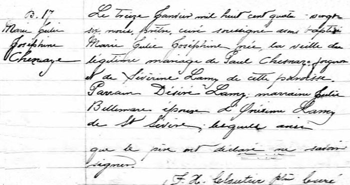 THE DESCENDANTS OF BERTRAND CHESNAY dit LAGARENNE