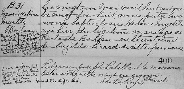 L'enregistrement de naissance et de baptême de Marie Hélène Myrlite "Dora"