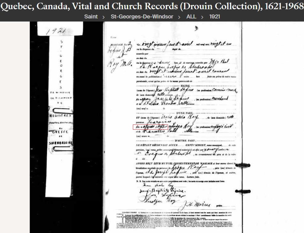 Marriage record between Adéla Roy (Adpoted child) & Jean-Baptiste Lépine