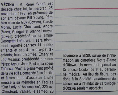 Joseph René "Vez" VEZINA